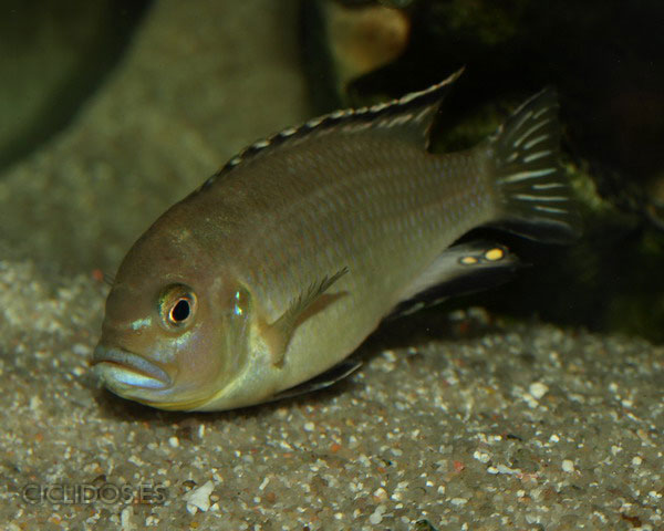 Tiene una típica forma de mbuna, una boca más pequeña y la cabeza con una pendiente suave. La coloración de cuerpo es variable. El cuerpo está marcado con algunas bandas verticales anchas que pueden ser más o menos visibles dependiendo del estado de ánimo. Macho y hembra tienen una coloración muy parecida, será necesario ver un mínimo de tres ocelos en la aleta anal de los machos para poder sexar este pez. También puede haber algunos reflejos azules entre los machos.
