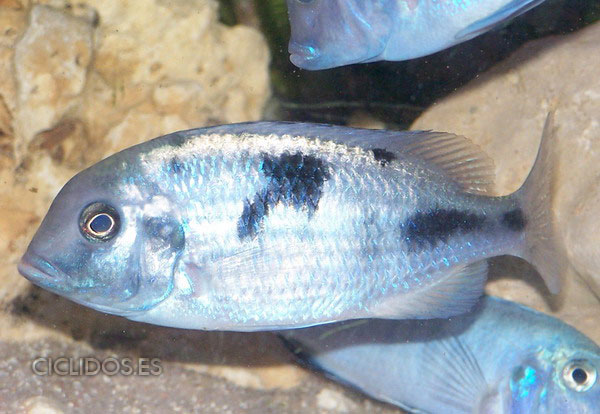 Los machos dominados en un estado de estrés presentaran tres tareas azul oscuro en el cuerpo. También aparecen estas manchas entre los jóvenes además de una docena de barras verticales negras.