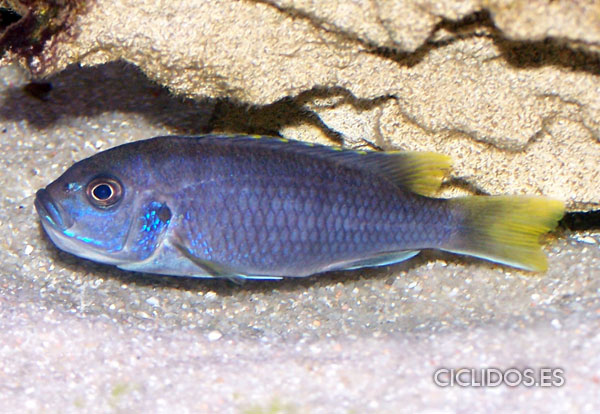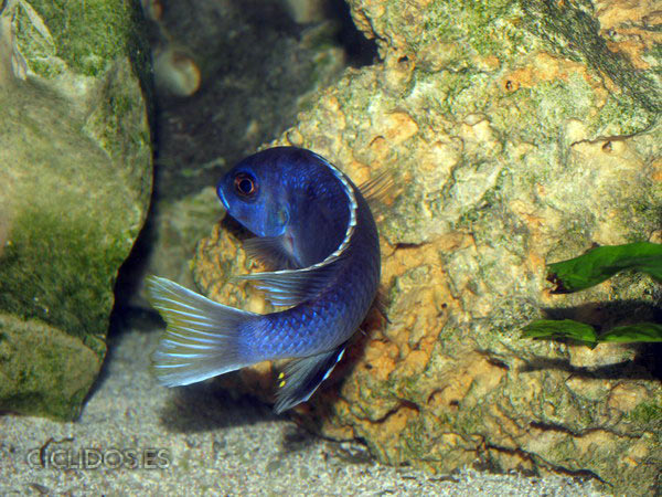 Machos y hembras son idénticos. La aleta anal es más puntiaguda en el macho. Su coloración es azul, dependiendo de la variedad tendrá un azul más oscuro o más claro, también cada variedad posee un color de aletas que va desde el amarillo en el la variedad de msuli hasta el blanco en la variedad ngara.