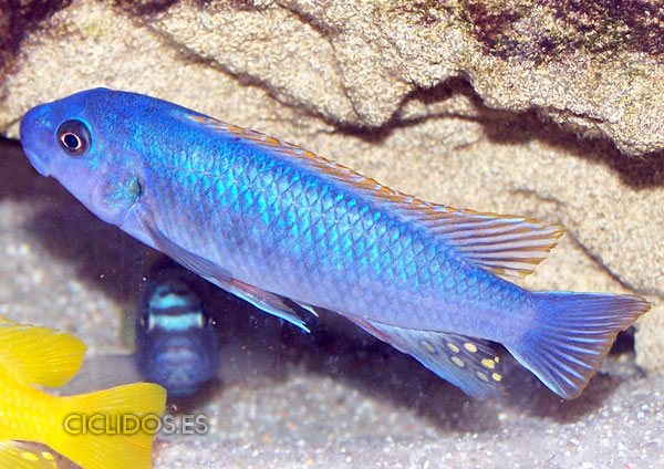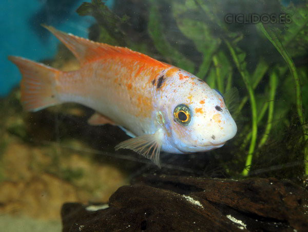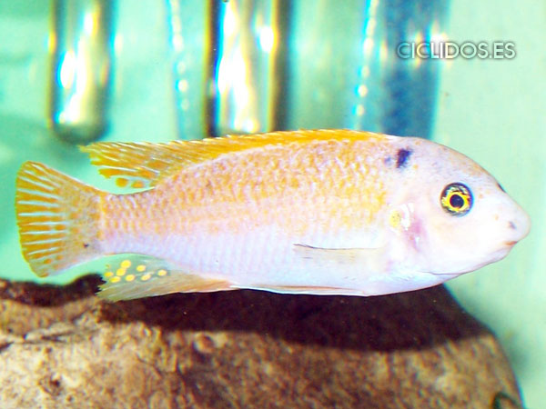 Su dieta es mas vegetariana que la mayora de los otros cíclidos del Malawi, lo que hace incompatible poner el acuario plantas ya que acabara con ellas.